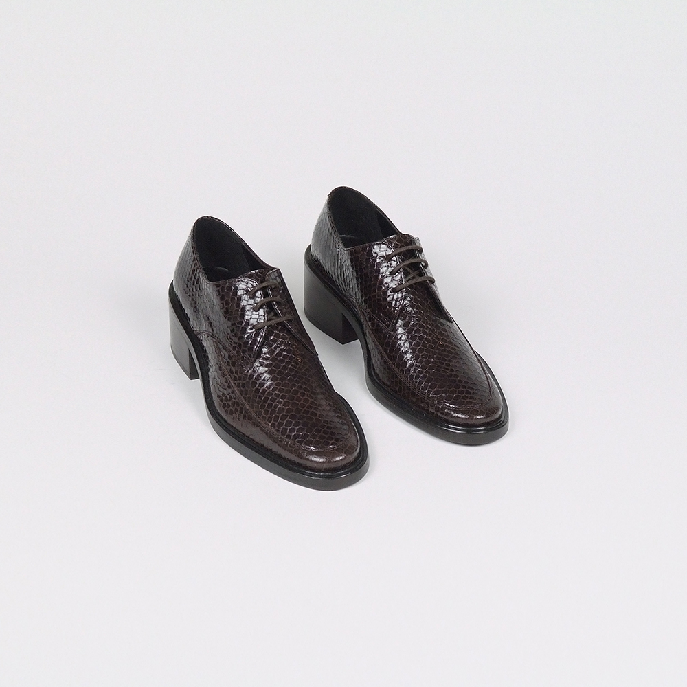 Δετά Brogues δερμάτινα lizard effect με τακούνι 4,5cm.