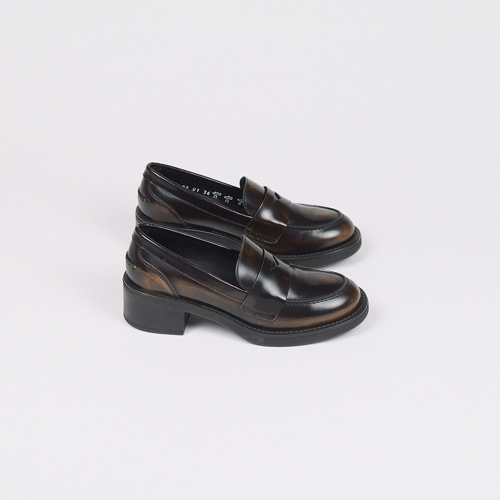 Μοκασίνια από δέρμα γυαλιστερό σε καφέ με ελαστική σόλα και τακούνι 4,5 cm