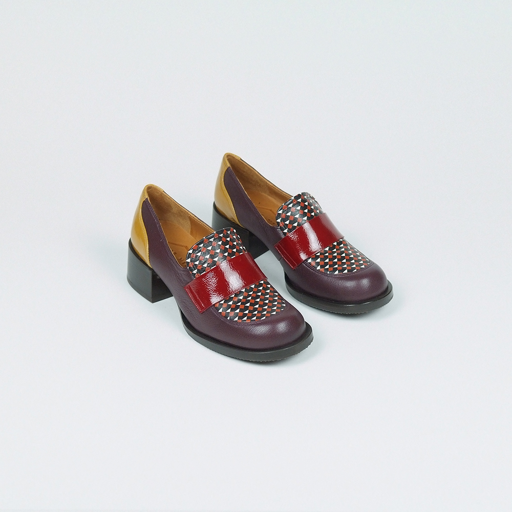 Μοκασίνια δερμάτινα πολύχρωμα με τακούνι 4,5 cm