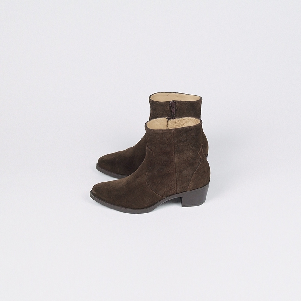 Μποτάκια δερμάτινα καστόρινα σε καφέ με φερμουάρ καιτακούνι 4,5cm.