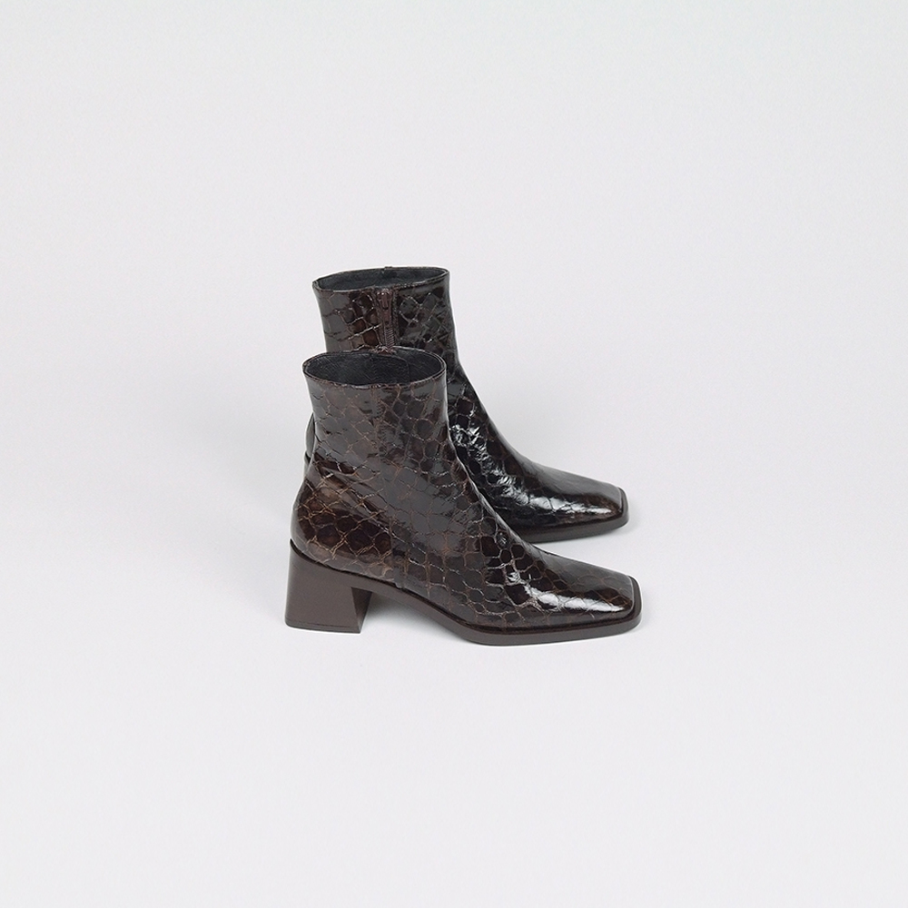 Μποτάκια δερμάτινα κροκό effect σε σκούρο καφέ με φερμουάρ και τακούνι 5,5cm