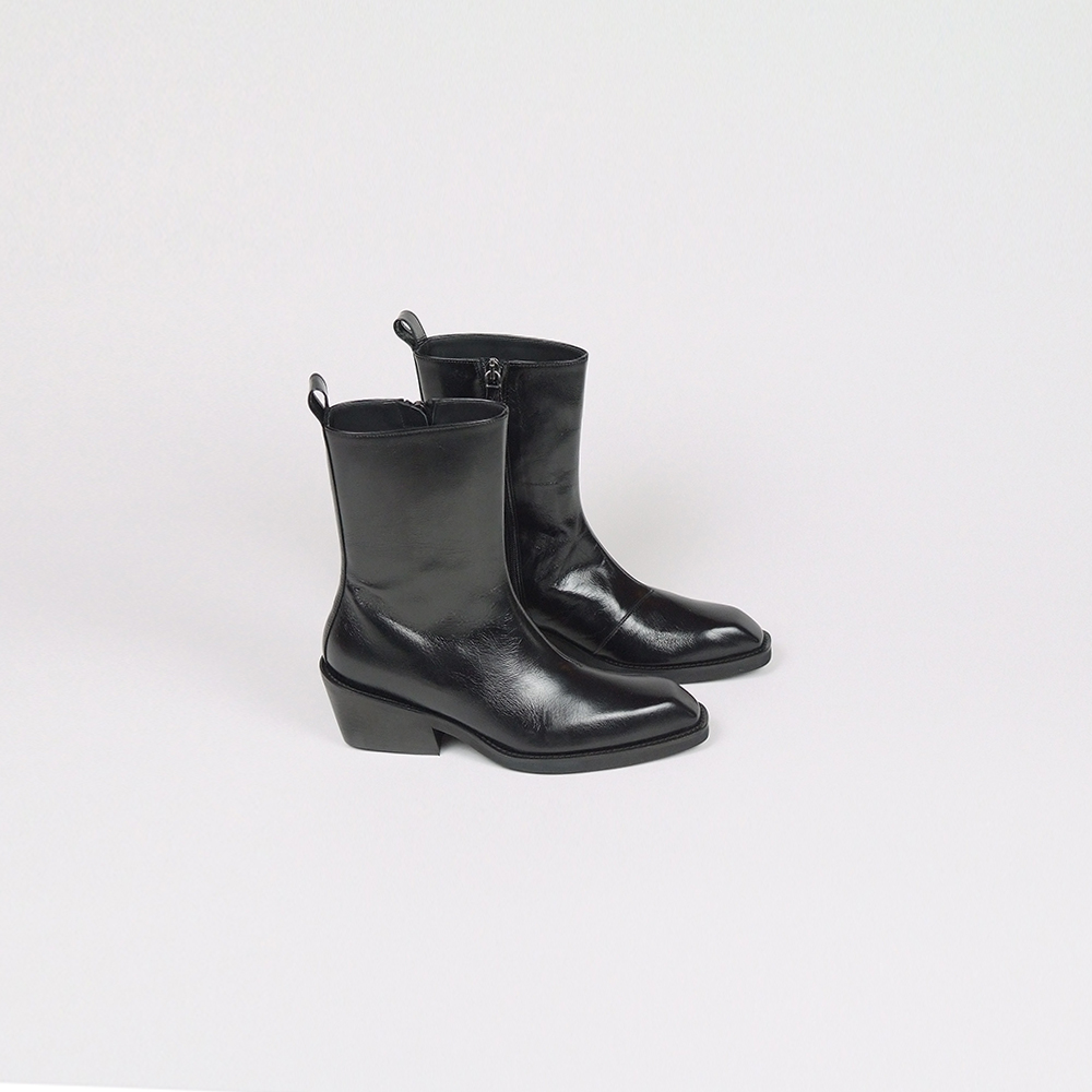 Μποτάκια δερμάτινα σε μαύρο με φερμουάρ και τακούνι 4,5c m