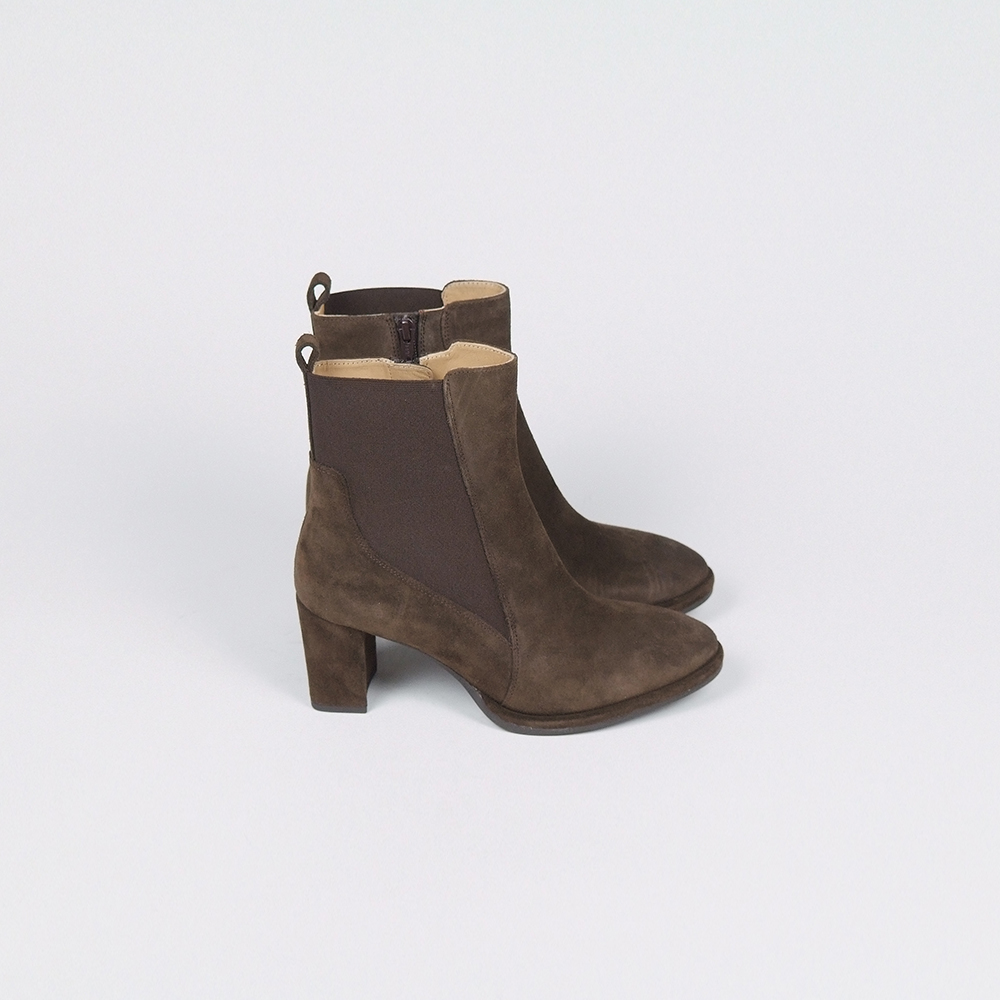 Μποτάκια δερμάτινα καστόρινα με φερμουάρ και τακούνι 6,5cm.
