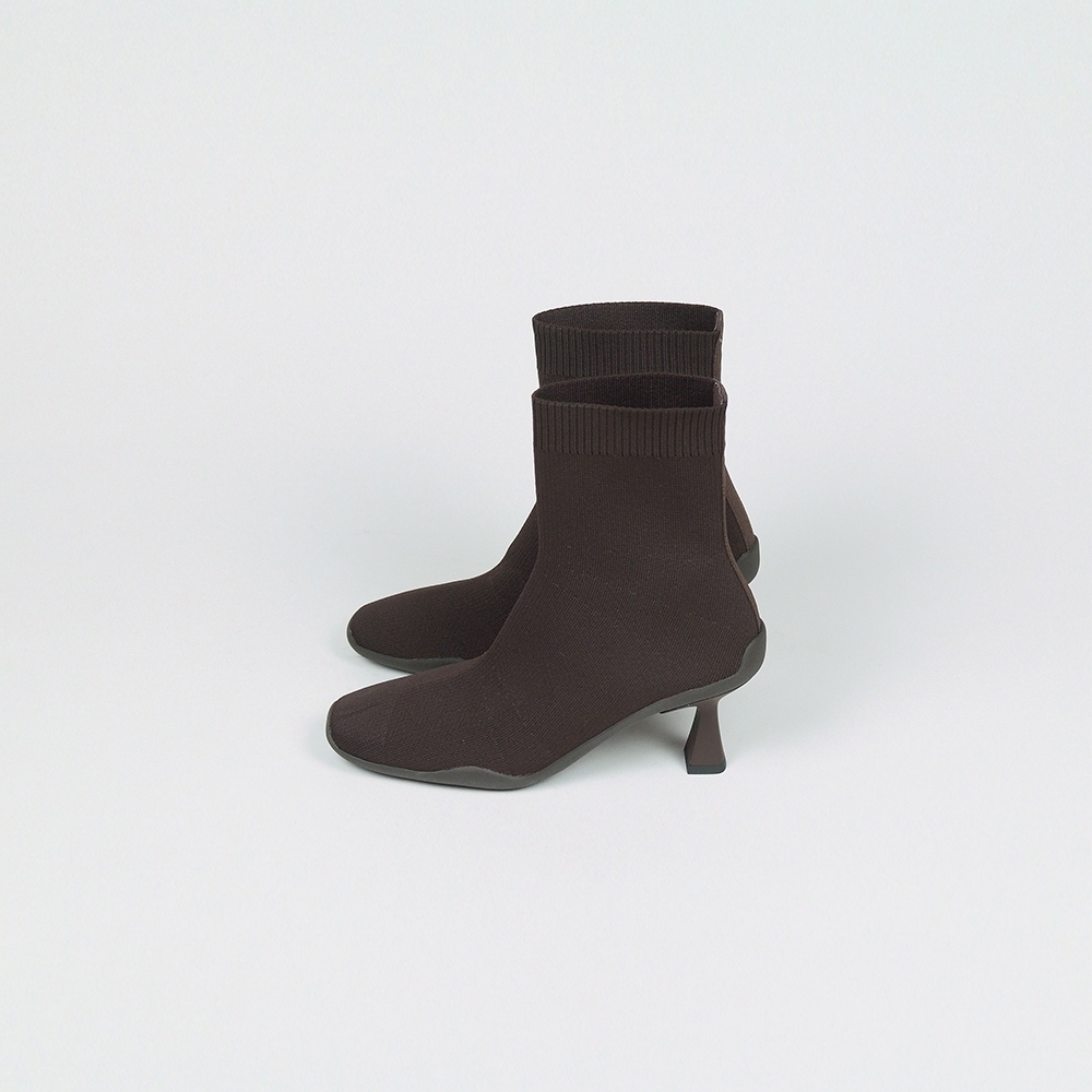 Μποτάκια από αλαστική κάλτσα σε καφέ με τακούνι 6,5cm.