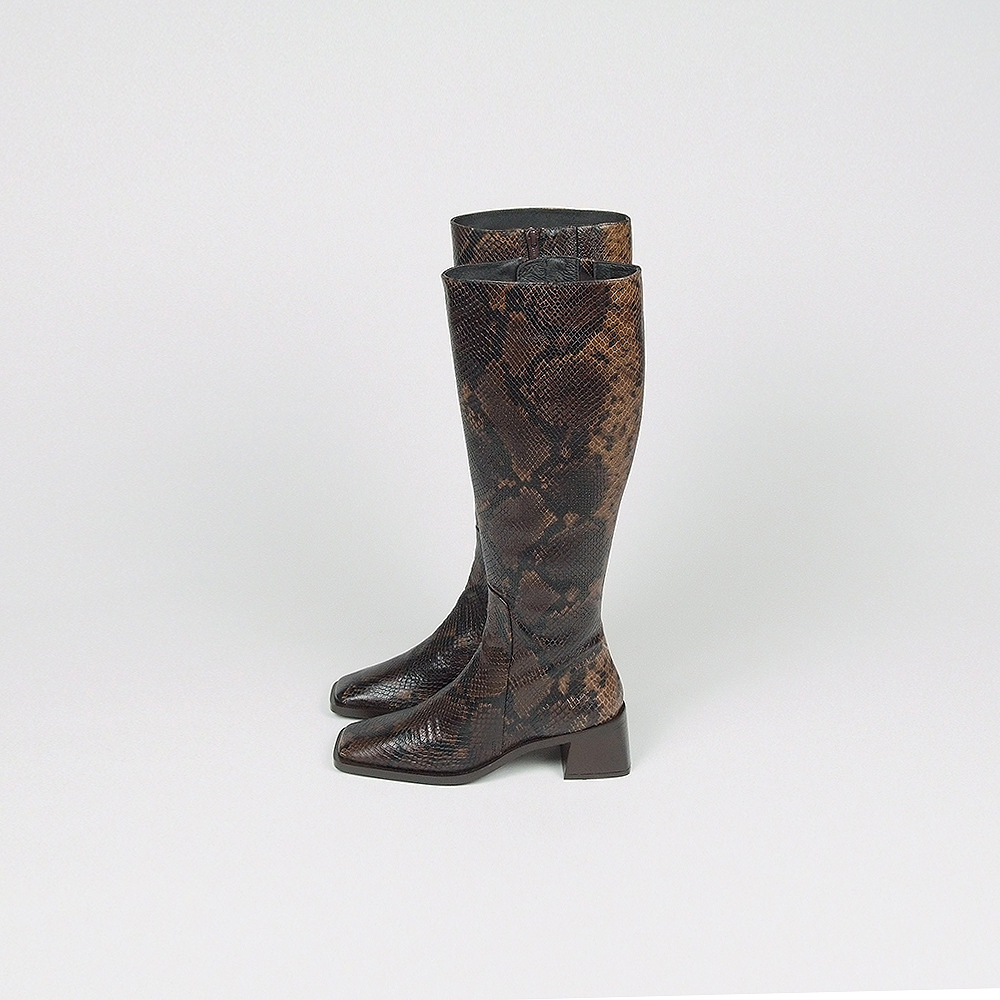 Μπότες δερμάτινες snake effect σε καφέ αποχρώσεις με φερμουάρ και τακούνι 4,5cm.