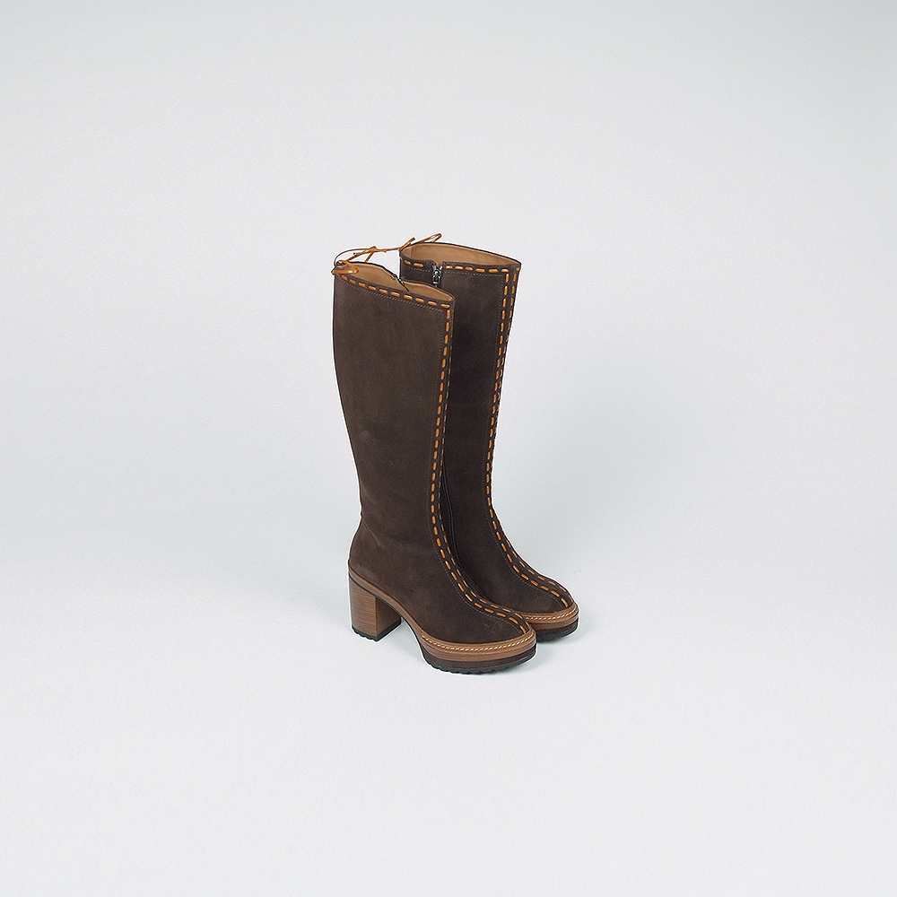 Μπότα δερμάτινη καστόρινη σε καφέ με φερμουάρ και τακούνι 7,5cm με ύψος πλατφόρμας 2,5cm.