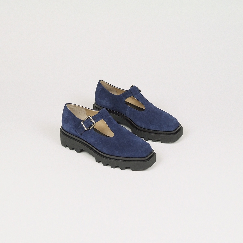 Brogues T-BAR δερμάτινα καστόρινα σε μπλέ